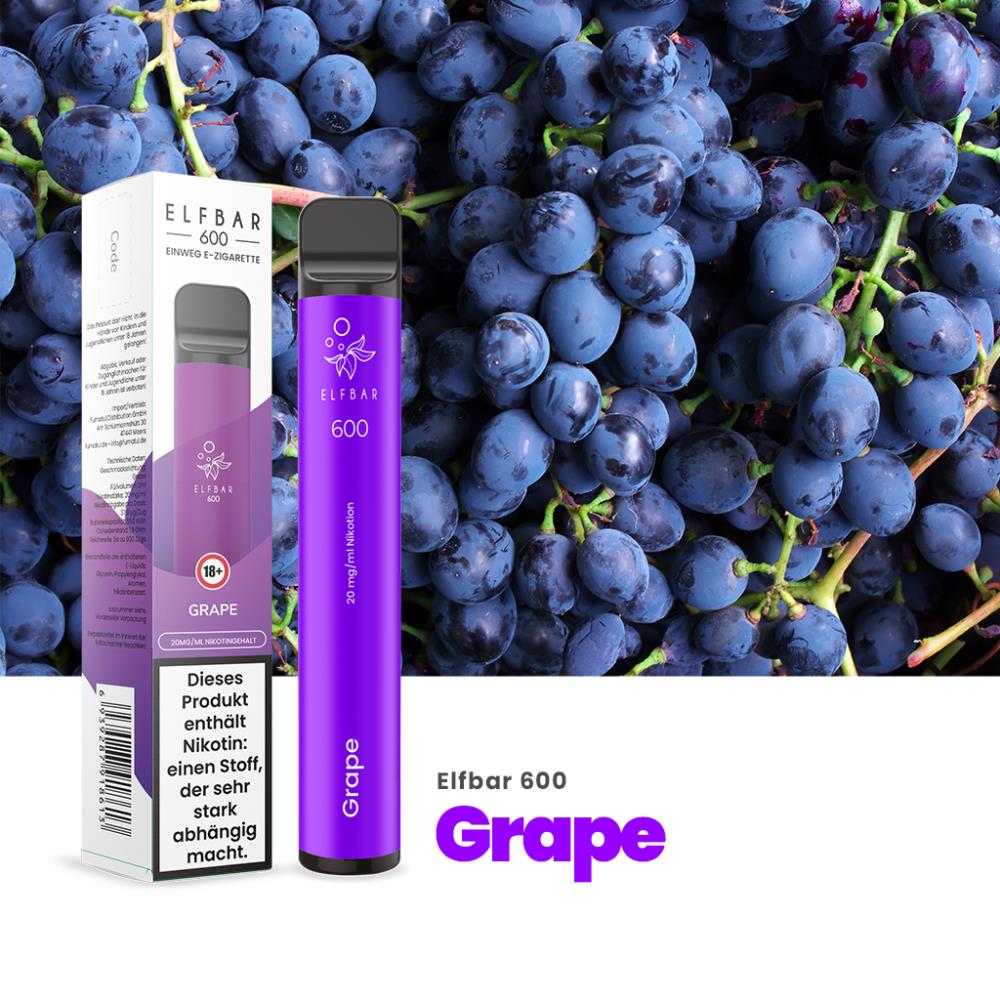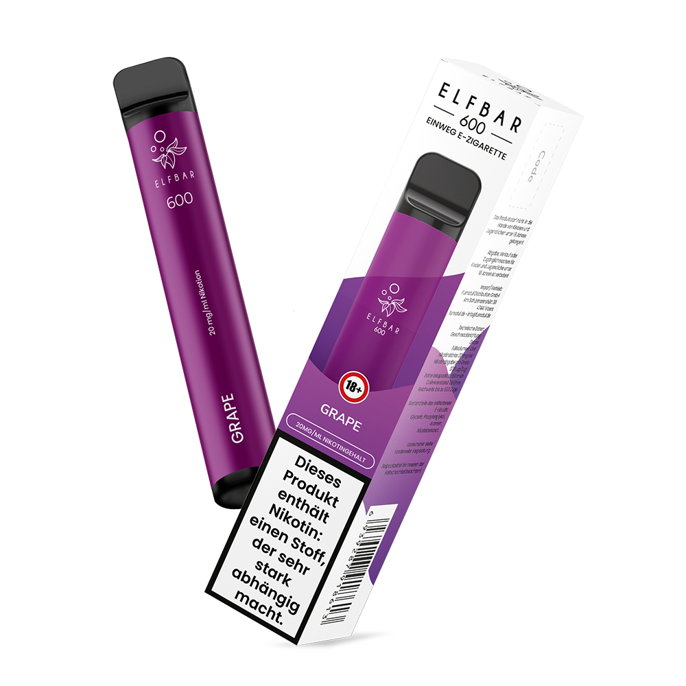 Elfbar 600 Grape bietet einen angenehm milden und ausgewogenen Geschmack von süßen Grape mit einem Hauch von Frische.